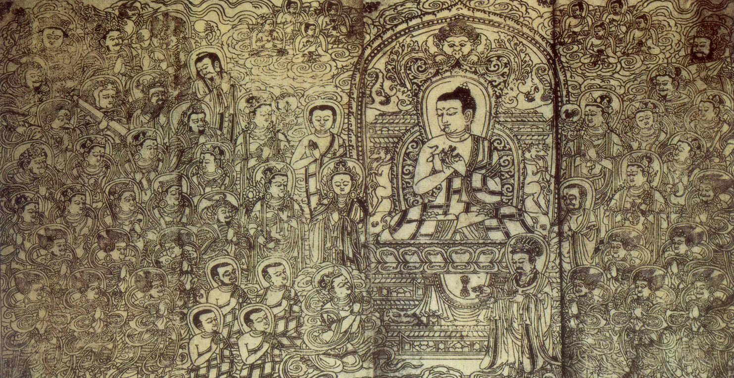 Ở tại nơi đây, Như Lai ngồi đoan nghiêm, với đại chúng vây quanh, như mặt trăng ở giữa các vì sao.