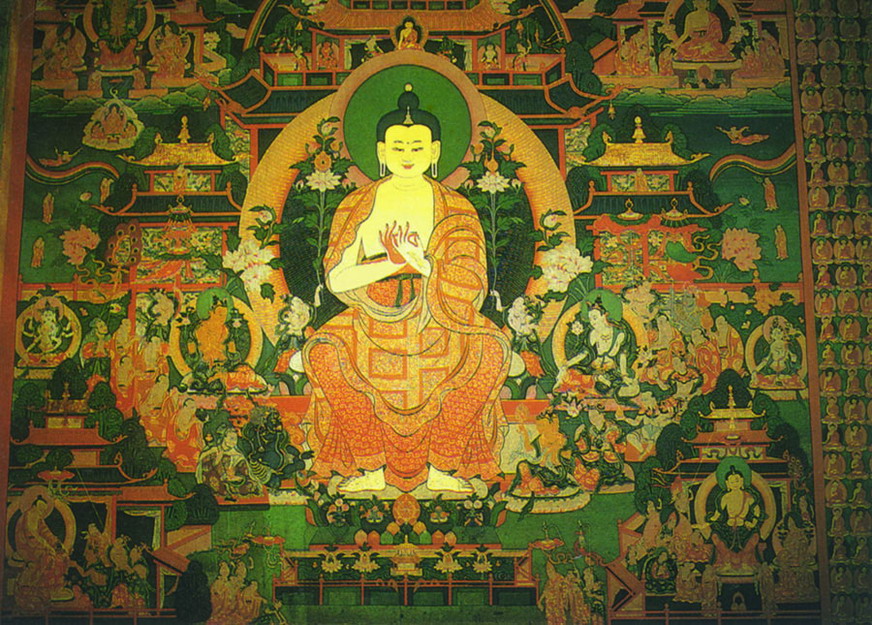 'Năng Tịch Thế Tôn đã ở trong đời ác năm trược giáo hóa chúng sanh. Trong 1.250 vị đệ tử, có một vị là khổ hành đệ nhất và có thân màu vàng. Vì muốn học Đạo, ngài đã xuất gia và rời khỏi vị hiền thê cũng có thân sắc vàng. Ngày đêm ngài luôn tinh tấn, như đang cứu lửa trên đầu mình. Ngài có lòng từ bi thương xót đối với các chúng sanh nghèo khổ, thấp kém, và luôn mong muốn độ thoát họ. Ngài vì Pháp nên mới trụ lại thế gian. Vị này không ai khác, chính là Bhikṣu Đại Ẩm Quang.'